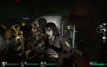 The game focuses on cooperation and teamwork and thus eschews some "realism" conventions usual in most FPS games of the wider genre; colored outlines of teammates are visible through walls to help players stick together and coordinate their movement. If a survivor falls off a ledge, then they may automatically hang onto it and can only be helped up by another survivor. If a survivor's health is depleted, then they become incapacitated and can only be revived by another survivor, at which point they continue playing with a low amount of health that decreases over time. If a survivor has been incapacitated and revived twice without tending to their wounds, then they will experience distorted black-and-white vision, and the next incapacitation will kill the character. If a survivor takes enough damage while incapacitated, or is not eventually helped up by teammates, then the incapacitated character will die. During "Campaign" mode, if a survivor is killed, then they will respawn in a closet or other enclosed space after a period of time (except during key points in the scenario), but must be freed by another survivor to rejoin the team. Otherwise, the player must wait until the next level.[4] However, if all human player survivors are killed or incapacitated, players will have to restart from the last checkpoint. Survivors can share first-aid kits and pain pills and help each other heal. Left 4 Dead has friendly fire (which causes no damage on the easy difficulty mode), increasing the need for caution around other survivors.