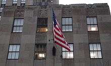 Returning to New York City, he began teaching at the Art Students League.[3] He also taught at the Cooper Union and became an academician of the National Academy of Design.[1] Lentelli gained fame through his The Savior with Sixteen Angels for the reredos at the Cathedral of St. John the Divine in New York, as well as his public sculpture for the Panama-Pacific Exposition in San Francisco.[8] Among his important works[1] are an equestrian statue of Robert E. Lee in Charlottesville, Virginia (collaboration with Henry Shrady), and a 1932 monument to Cardinal Gibbons[9] located north of Meridian Hill Park in Washington, D.C. A benignity is achieved in the latter, its decorative element accented in the carved chair and graceful folds of the cassock.[2] During the New Deal Lentelli created four statues for the Post Office in Oyster Bay, Long Island, dated 1937: a terracotta bust of Theodore Roosevelt, two terracotta panels and ornamentation at the base of the flagpole.[1] During the same period, he also created sculpture for the post office of North East, Pennsylvania.[10] His statue of Apollo and a musical muse, located in a lunette of Steinway Hall on 57th Street in New York City, was covered when the building was sold,[10] but is again on display. Other ornamental figures include Bagnante, a Diana, and Leda.[10] In addition to figures, Lentelli sculpted panels and bas-reliefs for many distinguished buildings.[8] He ornamented a frieze on the Free Academy building at Corning, New York with a panel of children's figures.[10] Lentelli's bas-reliefs on the International Building at Rockefeller Center are considered among his most important works.[6]