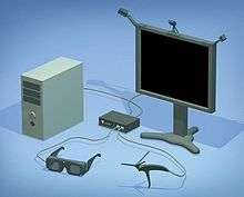 - Three-dimensional glasses with built-in infra LEDs which enables the detection of the eyeglasses’ position.