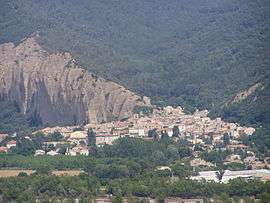 The village of Les Mées, seen from the village of Peyruis | ||