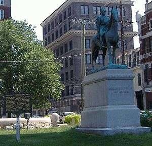 The first conflict in Lexington took place in August 1861. Union cavalry arrived in the city on August 21, numbering 200. Lexington Home Guard with Confederate sympathies quickly arrived on the scene. Former United States Vice President John C. Breckinridge, a resident of the city, negotiated between the Union cavalry and Confederate home guard, allowing the cavalry to safely depart the city.[7] On September 19 a strong Union force returned the city, with orders to disarm the home guard. Then Captain John Hunt Morgan led Confederate sympathizers from the city, to rendezvous with other Confederates by the Green River. The Union force would make the city a stronghold, and established a prison and hospital in the town.[8]