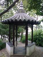 A freestanding hexagonal pavilion with flat eves ridges and an ornamented capstone. It is sited in the Small Court of Stone Forest. Sometimes it is called the Azure Pavilion. |