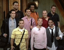 The nine men introduced on the show (from left to right): Ryan, Parker, Joshuah; Neil, Alex, Adam; Jacob, James, Matt