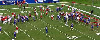 The Louisiana Tech Bulldogs football program represents Louisiana Tech University in college football at the NCAA Division I Football Bowl Subdivision (formerly Division I-A) level. After 12 seasons in the Western Athletic Conference, Louisiana Tech began competing as a member of Conference USA in 2013. Since 2013, the Bulldogs have been coached by Skip Holtz. Since 1968, the Bulldogs have played their home games at Joe Aillet Stadium. Since the Bulldogs first season in 1901, Louisiana Tech has compiled an all-time record of 596 wins, 446 losses, and 39 ties. In 111 football seasons, the Bulldogs have won 3 Division II national championships, won 25 conference championships, and played in 23 postseason games including 8 major college bowl games. Louisiana Tech has defeated at least one team from each of the current 10 FBS conferences, and Louisiana Tech is the only team from a non-AQ conference to defeat an SEC champion in the BCS era as the Bulldogs defeated Alabama in 1999.