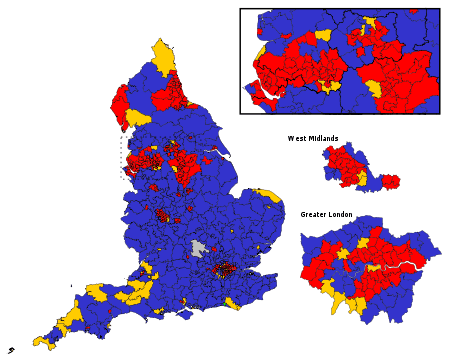 | Colours on map indicate the party allegiance of each constituency's MP. |
