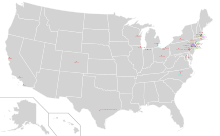 Map of schools offering women's varsity fencing