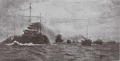 The Radetzky-class battleships were the third and last group of pre-dreadnought battleships to be constructed by Austria-Hungary.[14] The class was made up of three battleships: SMS Radetzky, SMS Erzherzog Franz Ferdinand, and SMS Zrínyi; all of which were built in the Stabilimento Tecnico Triestino shipyard in Trieste between 1907 and 1910.[15] Their heavy secondary guns were the main difference between the Radetzky-class battleships and other pre-dreadnought type battleships of the Austro-Hungarian Navy.[15][16]