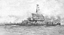 The breastwork monitor was developed during the 1860s by Sir Edward Reed, Chief Constructor of the Royal Navy, as an improvement of the basic monitor design developed by John Ericsson during the American Civil War. Reed gave these ships a superstructure to increase seaworthiness and raise the freeboard of the gun turrets so they could be worked in all weathers. The superstructure was armoured to protect the bases of the turrets, the funnels and the ventilator ducts in what he termed a breastwork. The ships were conceived as harbour defence ships with little need to leave port. This meant that they could dispense with the masts, sails and rigging needed to supplement their coal-fired steam engines over any distance. Reed took advantage of the lack of masts and designed the ships with one twin-gun turret at each end of the superstructure, each able to turn and fire in a 270° arc.[1] These ships were described by Admiral George Alexander Ballard as being like "full-armoured knights riding on donkeys, easy to avoid but bad to close with".[2] Reed later developed the design into the Devastation-class, the first ocean-going turret ships without masts, the direct ancestors of the pre-dreadnought battleships and the dreadnoughts.[3]