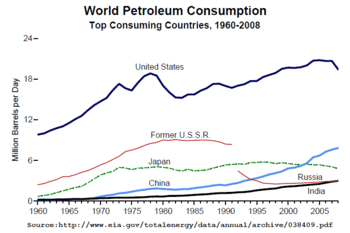 Despite this growth, the US remains by far the largest user of oil, consuming more than China in 2010. China may overtake the US around 2030. "BP Energy Outlook 2035" (PDF). p. 38.