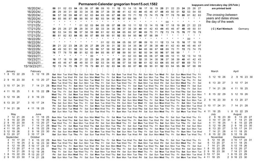 This perpetual calendar can be used to find the first Tuesday after the first Monday in November for any year in the Gregorian calendar through A.D. 2799