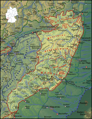 - ↑ Michael Geiger: Die Landschaften of the Pfalz. In: Michael Geiger (ed): Geographie of the Pfalz.Verlag Pfälzische Landeskunde, Landau/Pfalz 2010. pp. 92–93