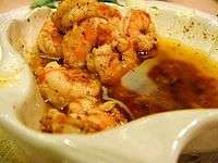 This is a list of notable seafood dishes. Seafood dishes are distinct food dishes[1] which use seafood (fish, shellfish or seaweed) as primary ingredients, and are ready to be served or eaten with any needed preparation or cooking completed. Many fish or seafood dishes have a specific names (cioppino), while others are simply described (fried fish) or named for particular places (Cullen skink).[2] Bisques are prepared with a variety of seafoods.