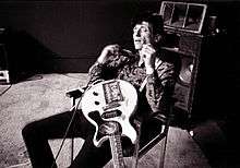 After almost two years promoting the 1991 albums on the Use Your Illusion Tour, Guns N' Roses returned to the studio to record "The Spaghetti Incident?", an album of cover versions and the first by the band to feature rhythm guitarist Clarke, released in 1993.[1] Among others, the album featured recordings of "Raw Power" by The Stooges, "Since I Don't Have You" by The Skyliners, and a medley of "Buick Mackane" and "Big Dumb Sex" by T. Rex and Soundgarden, respectively.[6] The following year, Clarke was replaced with Paul Tobias, and the band released a cover of The Rolling Stones song "Sympathy for the Devil" for the soundtrack to the film Interview with the Vampire: The Vampire Chronicles.[7][8] This would prove to be the final involvement for long-term band members Slash, McKagan, and Sorum, who would later leave at various points over the next few years due to internal tensions within the band.[1][7]