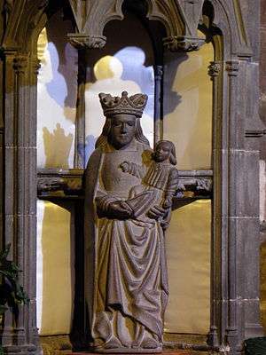 The Virgin Mary with child in a niche in the south porch buttress |