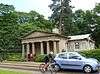 1834 | The lodge was designed by James Hakewell, and is at the entrance to Tatton Park. It is built in stone with a lead roof, and is in one storey with a basement. At the front is a Greek Doric portico with six columns carrying an entablature containing triglyphs, guttae, metopes and a plain pediment. The windows are sash windows. At the rear is another open portico, this one having two columns and no entablature.[10][11] | II |
