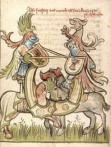 Depiction of a late 13th-century joust in the Codex Manesse. joust by Walther von Klingen {right}