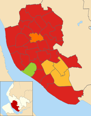 Due to the 'in thirds' system of election, one third of the council were up for election, with direct comparisons to previous results made with the corresponding vote at the Liverpool City Council election, 2012 There were two by-elections in Belle Vale and Norris Green wards, so these wards each elected two councillors. After the election, the composition of the council was: