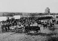 The town developed rapidly: by 1904 there was a telegraph office as well as a log church; in 1905 the Lloydminster Daily Times started publication and the first train arrived on July 28.[13]