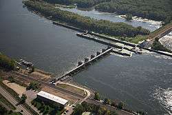 ![]() Lock and Dam 5A, Upper Mississippi River. View is upriver to the northwest. | |
