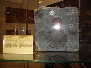 FuG120/FuG120k Bernhard: The "Bernhard/Bernhardine" system was a nightfighter/day fighter radio-navigation system. Primary intended to guide fighters into the bomber streams rather than against individual aircraft. The ground station (FuSAn 724/725) "Bernhard" was the VHF rotating directional-beacon ground-station. It continuously transmitted the station identifier and the antenna azimuth (bearing) in Hellschreiber-format. The FuG 120 "Bernhardine" was the airborne Hellschreiber system that prints the data stream from the selected Bernhard station. The HF receiver for the system was the EBL3 from the FuBL 2 ILS system. Operating Frequency: 30 - 33.1 MHz, Transmitter power: 2 × 500 Watt (FuSAn 724) or 2 x 5000 Watt (FuSAn 725). Antenna rotational speed: 12 degrees per second (2 revolutions per minute). Accuracy: initially ±1°, then improved to ±0.5°. The system was initially deployed in 1941/42 however work was stopped until 1944. Deployment was started to try and produce a "jam proof" system. A later version (deployed at about 3 sites) alternated between sending angular information and text message instructions which allowed a simple form of data link between the fighter direction stations and the fighters. FuG 120k: This version was developed as the original unit was bulky and expensive. In return for considerable reduction is size and weight azimuth measurement was reduced to approx. 4 degrees.[4]