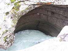 The gorge consists of a series of large interconnected giant's kettles formed by the river Driva since the last ice age. The bedrock in the gorge is hard gneiss, and Driva is eroding it at a speed of 1 millimetre (0.039 in) per year, equivalent to 10 meters (33 ft) in 10 000 years.
