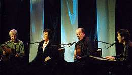 In 1987, Tríona and Irish-American flutist Brian Dunning joined Ó Domhnaill and Oskay to form the band Nightnoise. The quartet's first album Something of Time was released by Windham Hill Records in 1987. It was followed by At the End of the Evening (1988) and The Parting Tide (1990).[15] These albums received significant commercial and critical acclaim, and helped the group develop an impressive reputation touring the United States, Japan, and Europe.[1] Their music effectively combined "original acoustic chamber music with an Irish feel mixing jazz, classical, folk and new age idioms."[1] Their original music made full use of the Ó Domhnaill's folk background, the folk/jazz combinations of Skara Brae, Brian Dunning's jazz background, and Bill Oskay's classical influences.[1]