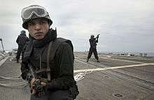 MARCOS, previously named as Marine Commando Force (MCF), is the special forces unit of the Indian Navy. created for conducting special operations such as Amphibious warfare, Close Quarter Combat Counter-terrorism, Direct action, Special reconnaissance, Unconventional warfare, Hostage rescue, Personnel recovery, Combat search and rescue, Asymmetric warfare, Foreign internal defence, Counterproliferation, Amphibious reconnaissance including Hydrographic reconnaissance. The MCF is specially organised, trained and equipped for the conduct of special operations in a maritime environment.[2] MARCOS is short for Marine Commandos. The force has gradually acquired experience and a reputation for professionalism over the three decades it has been in existence. The MARCOS are capable of undertaking operations in all types of terrain, but are specialised in maritime operations in Jammu and Kashmir through the Jhelum River and Wular Lake, a 65 square kilometre freshwater lake. Some MARCOS personnel are also attached with the Army special forces units conducting counter-terrorism operations in the area. MARCOS are widely feared among the terrorists, who call them "Dadiwala fauj",[1] meaning the "Bearded army" because of their bearded disguise in civil areas.
