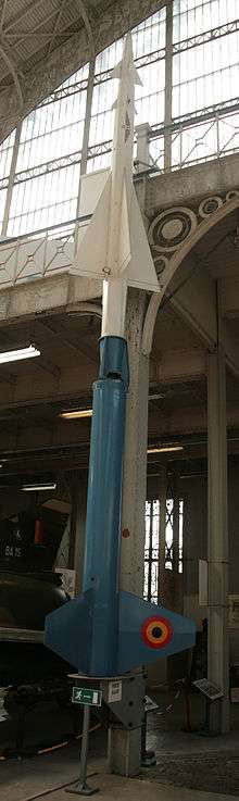 This was not the only Army missile project at the time; the US Army Air Force was involved in studies of the Ground-to-Air Pilotless Aircraft (GAPA), a longer-range system based on what was essentially a drone aircraft. Bell had been invited to take part in GAPA as well, but declined as they wanted to concentrate on Nike.[7] GAPA was opened to tender, and was picked up by other companies, notably Boeing.[8] This led to a semi-formalized agreement that the Army Air Force and the Ordnance Corps would split development based on whether or not the design "depend[ed] for sustenance primarily on the lift of aerodynamic forces" like GAPA, or "primary on the momentum of the missile" like Nike.[9]