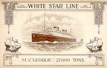 - ↑ "The Cunard White Star Liners 'Britannic ' and 'Georgic'". liverpoolships.org. Retrieved 11 December 2014.