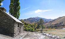 Macetown is an historic gold mining settlement in the Otago region of the South Island of New Zealand. It is now uninhabited but has become a tourist attraction. Access to the town is via an unsealed road that heads up the steep-sided Arrow gorge. This can be traversed on foot or by mountain bike, horse or four-wheel-drive vehicles. The road crosses the Arrow River or its side creeks 22 times and is not suitable for two-wheel-drive cars. The start of the road is found in the Arrowtown car park.