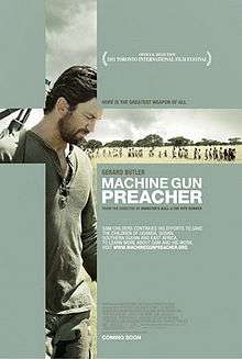 Machine Gun Preacher is a 2011 biographical adventure drama film about Sam Childers, a former gang biker turned preacher and defender of South Sudanese orphans. The movie was based on Childers' book Another Man's War.[3] It was written by Jason Keller, directed by Marc Forster, and stars Gerard Butler, Michelle Monaghan and Michael Shannon.