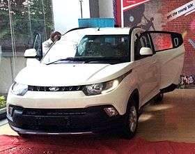 Mahindra KUV100 (pronounced as KUV one double O), where 'KUV' stands for 'Kool Utility Vehicle' is a compact-Mini sport utility vehicle automobile designed and manufactured by the Indian Mahindra & Mahindra.[1] The vehicle was unveiled on 18 December 2015, and was launched in India on 15 January 2016.[2]