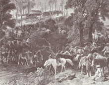Cunningham's regiment arrived in Ninety-Six on November 19 to support Major Andrew Williamson against a band of Loyalist militia. The battle lasted for three days before the sides agreed to both lay down their arms.[8] Despite the truce, Colonel Richard Richardson dispatched a fleet of Rangers to surprise a Loyalist party the morning of December 22. In what became known as the Battle of Great Cane Break, the rebels captured 130 men while suffering no casualties. The loyalist group was led by Cunningham's cousin Patrick, who managed to escape into Cherokee country.[9]