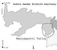 Manjampatti Valley is a 110.9 km2 (42.8 sq mi) protected area in the eastern end of Indira Gandhi Wildlife Sanctuary and National Park (IGWS&NP) in Tirupur District, Tamil Nadu, South India. It is a pristine drainage basin of shola and montane rain forest with high biodiversity recently threatened by illegal land clearing and cultivation.[1][2]