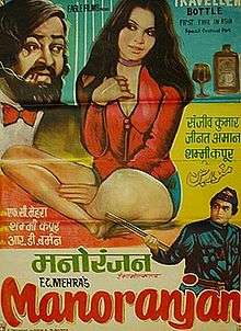 Manoranjan is a 1974 Indian Hindi film directed by Shammi Kapoor. It is a remake of Irma La Douce. Sanjeev Kumar plays Jack Lemmon's role, Zeenat Aman Shirley MacLaine's and Shammi Kapoor plays Lou Jacobi's. Hotel Casanova is called Hotel Mauj!. Among the rest of the cast are Paintal, Asit Sen and Dev Kumar.