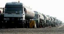 A convoy of civilian Mercedes-Benz Actros trucks in Iraq waiting for inspection. The vehicles are built in the Cairo plant of MCV.