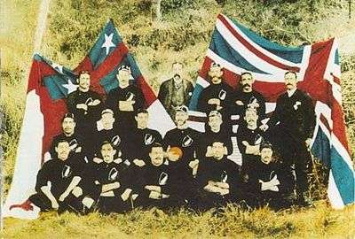 The team's first match was in 1888 against Hawke's Bay, and their first international match in 1888 against Ireland in Dublin. This was followed by a tour of Europe in 1888 and 1889 where the team suffered their first Test defeat—to Wales in Swansea.