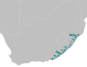 The Maputaland-Pondoland bushland and thickets is one of the ecoregions of South Africa. It consists of the montane shrubland Biome.[1] The ecoregion occupies the foothills of the Drakensberg mountains, covering an area of 19,500 square kilometers (7,500 sq mi) in South Africa's Eastern Cape and KwaZulu-Natal provinces. It is bounded on the east by the KwaZulu-Cape coastal forest mosaic, which lies in the humid coastal strip along the Indian Ocean; to the west it is bounded by the higher-elevation Drakensberg montane grasslands, woodlands and forests. To the south, it transitions to the drier Albany thickets, which are characterized by more succulent and spiny plants.