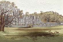 A small chapel known as Hen Eglwys, also called Cryke Chapel and dated to 1470, was a grange of the Abbey on the hillside of Craig-y-capel. The gable-ends, with window tracery are the principle survivals, and provided a gothic landmark and viewpoint for the 19th-century parkland of Margam Castle. There was a burial ground and a nearby holy well known as Ffynnon Mair.[5]