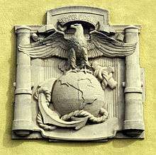 Marines made an amphibious landing in San Diego in 1846 from USS Savannah and USS Congress during the Mexican–American War.[4] Marines made a presence in San Diego again in July 1914, but ground was not broken for a permanent base until March 2, 1919. The initial proposal for the base came from Congressman William Kettner, who also proposed construction of Naval Training Center San Diego. The Marine base only became a reality due to the perseverance of its first commanding officer, Colonel Joseph Henry Pendleton (later a general and the namesake of Camp Pendleton).[5] Before the commissioning of the base on Dutch Flats, the Marines were based in Balboa Park.[6] The structures were designed by architect Bertram Goodhue in the Spanish Colonial Revival style, and they echo the style used for the buildings of the 1915 Panama–California Exposition (also inspired by Goodhue). The base and its original buildings are now on the National Register of Historic Places listings in San Diego County, California. By 1921, the base was formally commissioned, and in 1923 it became the Marine Corps' recruit training center for the western United States. During World War II, the flow of recruits into the base surged, with 18,000 recruits arriving in one month.[5] In 1948, the base was formally named Marine Corps Recruit Depot San Diego.