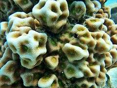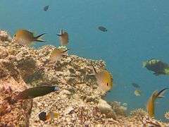 The ecosystem is characterized by a very high rate of coral cover, highly diverse and dominated by table, digitate and branched corals of the genus Acropora. The shallow waters of this atoll and its particular richness in corals and fish have made it destination for underwater tourism.[1] The presence of huge animals such as manta rays and whale sharks add spectacular encounters to the beauty of the place.[3] Scientific studies suggest that the faunistic composition can vary greatly between neighbor atolls, especially in terms of benthic fauna.[4]