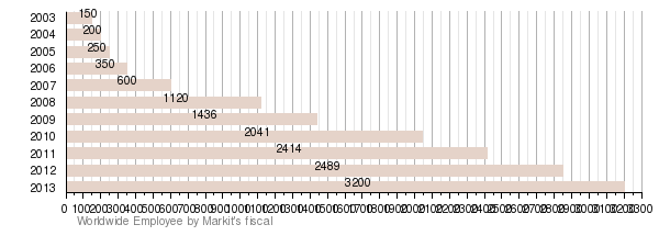 Markit had 150 employees in 2003, and by the end of 2013 had around 3200 employees across the Globe.[9]
