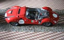 The Maserati Tipo 61 (commonly referred to as the Maserati Birdcage) is a sports racing car of the early 1960s. The car was produced between 1959 and 1961 by Maserati for racing in sports car events including the 24 Hours of Le Mans endurance classic. It used an intricate tubular space frame chassis, containing about 200 chro-moly steel tubes welded together, hence the nickname "Birdcage".[1] This method of construction provided a more rigid and, at the same time, lighter chassis than other sports cars of the time.[1] By recessing the windscreen base into the bodywork, Maserati was able to reduce the effect of new Le Mans rules demanding a tall windscreen. The Camoradi team became famous racing the Tipo 61s but, despite being very competitive, the Birdcage was somewhat unreliable and occasionally retired from many races due to problems with the drivetrain.[2][3]