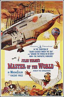 Master of the World is a 1961 science fiction film based upon the Jules Verne novels Robur the Conqueror and its sequel, Master of the World. The movie was written by Richard Matheson, directed by William Witney, and features Vincent Price, Charles Bronson, and Henry Hull. American International Pictures released the film as a double feature with Konga.