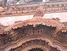 Because of East Indian influences in his work and a vague similarity to the design of the Indian Jain temple of Ahmedabad,[2] scholars have often tried to link Mateus Fernandes to Tomás Fernandes, a military architect in India, or to Diogo Fernandes of Beja, who was a member of the embassy in Gujarat in 1513. But all this has remained conjecture. The north porch of St Mary Redcliffe at Bristol has a resemblance to his style, which is a possibility because of the frequent contacts between Portugal and England.[3]