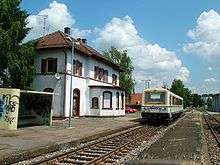 The Meckesheim–Neckarelz railway is a branch line in northern Baden between Meckesheim and Aglasterhausen that used to run to Neckarelz. It was part of the former Baden Oldenwald Railway from Heidelberg to Würzburg, and thus a main line, which is why its trackbed was built for two tracks. The section remaining today also goes under the name of Schwarzbach Valley Railway (German: Schwarzbachtalbahn).