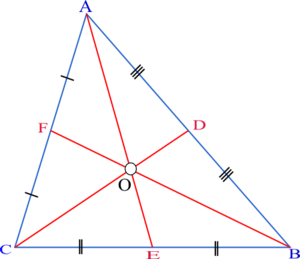 Consider a triangle ABC. Let D be the midpoint of , E be the midpoint of , F be the midpoint of , and O be the centroid (most commonly denoted G).