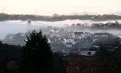 Menai Bridge (Welsh: Porthaethwy; usually referred to colloquially as Y Borth) is a small town and community on the Isle of Anglesey in north Wales. It overlooks the Menai Strait and lies by the Menai Suspension Bridge, built in 1826 by Thomas Telford, just over the water from Bangor. With a population of 3,376,[1] it is the fifth largest town on the island.
