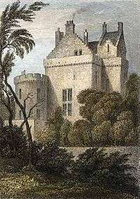 Merchiston Tower as it appeared in 1829, showing the addition to the front made by the Merchiston Castle School, which occupied it at that time.