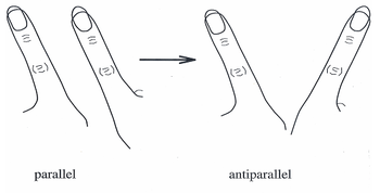 In the mid-1980s HKB model experiments, subjects were asked to wave one finger on each hand in two modes of direction: first, known as out of phase, both fingers moving in the same direction back and forth (as windshield wipers might move); and second, known as in-phase, where both fingers come together and move away to and from the midline of the body. To illustrate coordination dynamics, the subjects were asked to move their fingers out of phase with increasing speed until their fingers were moving as fast as possible. As movement approached its critical speed, the subjects’ fingers were found to move from out-of-phase (windshield-wiper-like) movement to in-phase (toward midline movement).